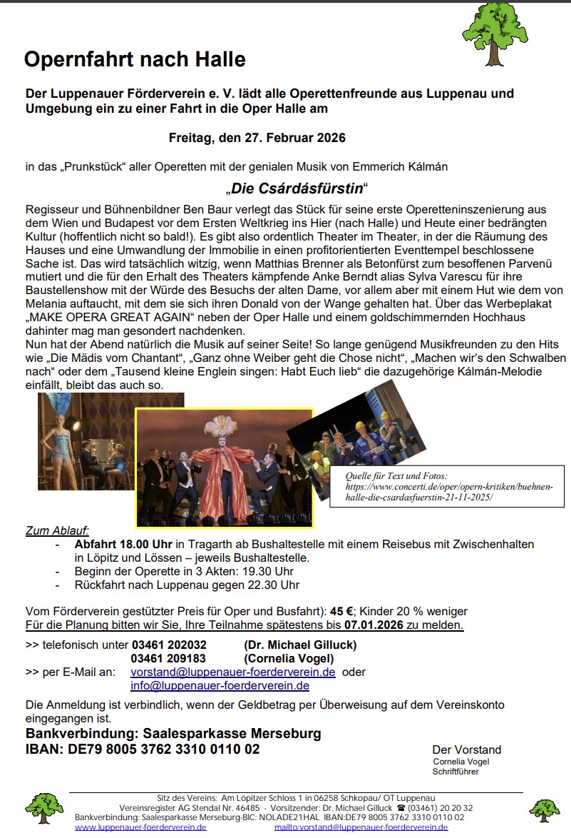 Der Luppenauer Förderverein lädt alle Operettenfreunde aus Luppenau und